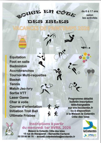 Bulletin inscription téléchargeable sur www.lecotentin.fr ou à disposition à la Maison le Cotentin Côte des Isles.